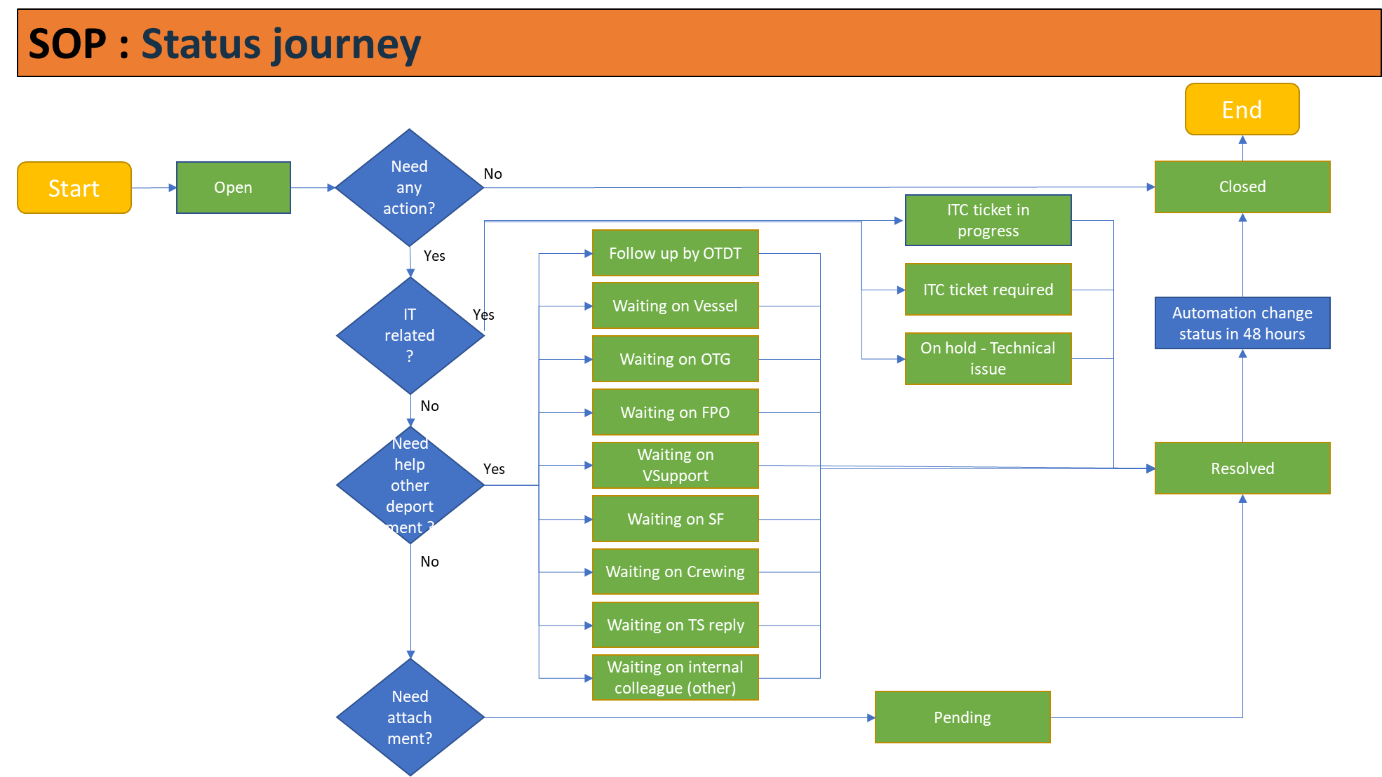 All status will related to let all the party know more on the details of response from each of department and make sure you will not lose the way to follow up and resolved the ticket.